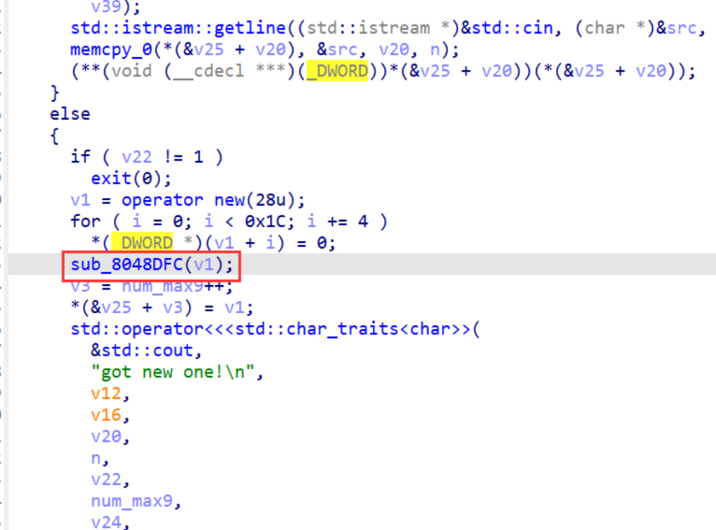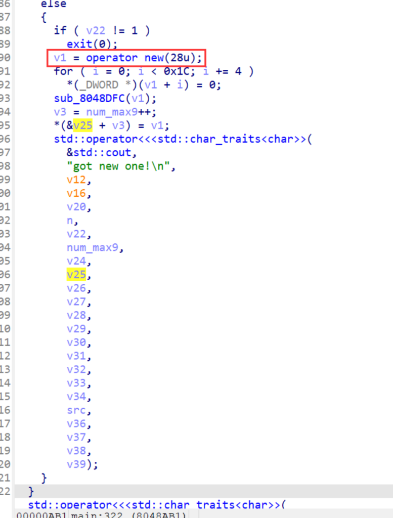 这题没写出来,因为题目没有delete(free),所以一直在想怎么用house of orange来打。难点在于libc没给,所以top chunk地址后三位不知道,而且就算改成0xfe1、0xfa1,题目限制最多添加9个0x20的chunk也不够把top chunk挤到unsorted bin去。