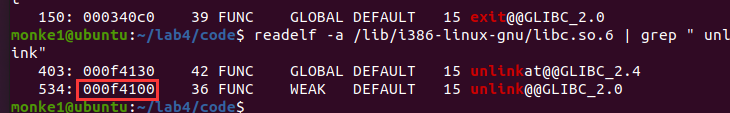 readelf -a /lib/i386-linux-gnu/libc.so.6 | grep " unlink"