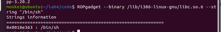 ROPgadget --binary /lib/i386-linux-gnu/libc.so.6 --string "/bin/sh"