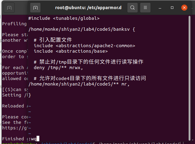 修改好后sudo apparmor_parser -r /etc/apparmor.d/xxx.xxx.banksv