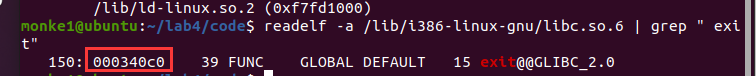readelf -a /lib/i386-linux-gnu/libc.so.6 | grep " exit"
