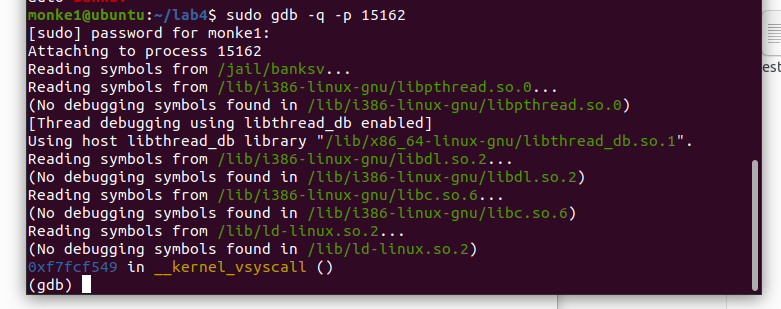 sudo gdb -q -p (此处填banksv的pid)