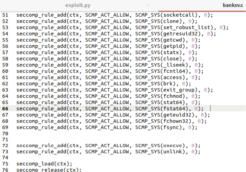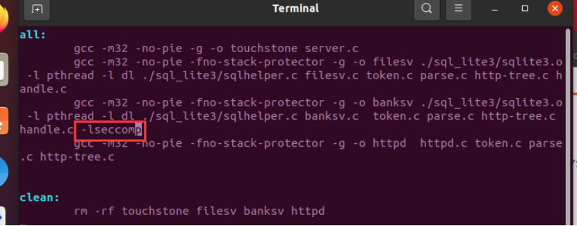 在makefile的编译banksv那一行最后加上-lseccomp: