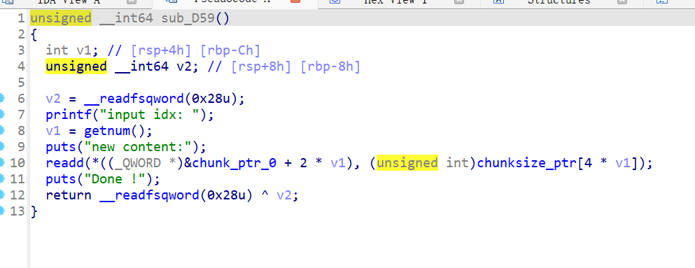 edit函数:根据索引找到对应chunk指针,然后根据chunk_size的大小对chunk进行修改,所以没有溢出。