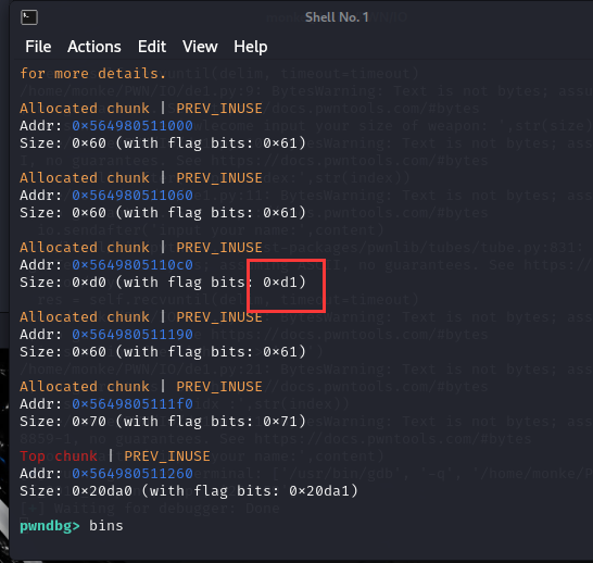 add(0x50,7,p64(0)+p64(0xd1))#拿到fakechunk,在申请的同时对chunk2的size进行修改