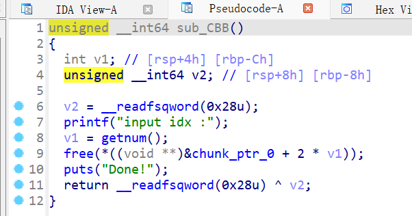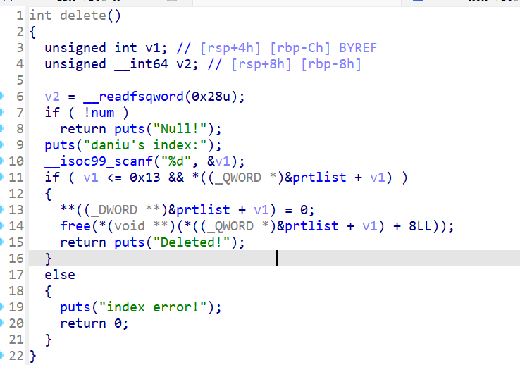 delete函数:根据chunk的指针数组来free掉相应的chunk,但没有置空,存在UAF,由于环境是ubuntu 16,所以还有double free。