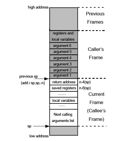 与x86不一样,MIPS没有pop和push指令,通过 load 或者 store 指令进行内存访问的方式使用栈。