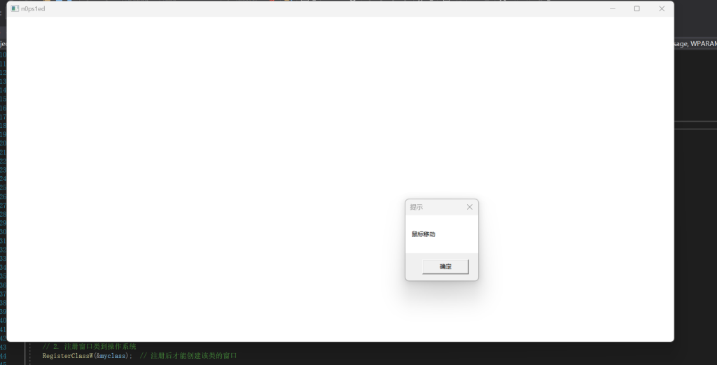 MessageBoxW(hwnd, L"鼠标移动", L"提示", MB_OK);  // 显示关闭提示