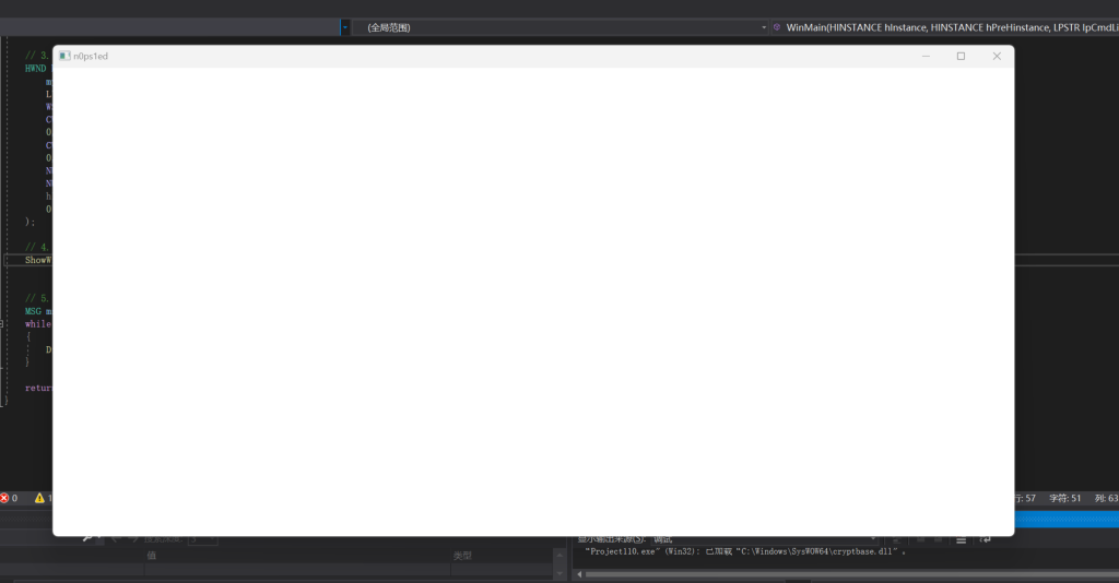 第一步,定义并初始化窗口类,windows.h给了WNDCLASS以及WNDCLASSEXW、WNDCLASSW、WNDCLASSA等变种,WNDCLASSEXW比较常用,此处我们使用WNDCLASSW。